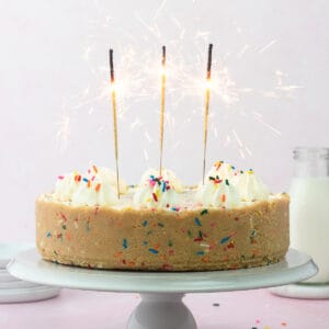 - Decorate your cheesecake (optional) - Make some whipped cream and pipe on top of the cheesecake and top with additional sprinkles. Alternatively, you can top with a white chocolate ganache. Serve and enjoy!